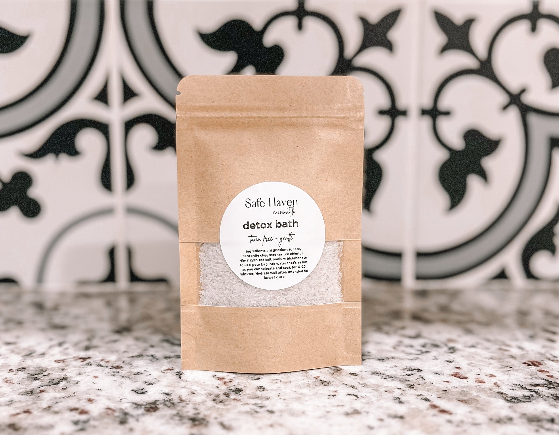 This detox bath consists of magnesium sulfate, Himalayan sea salt, bentonite clay, sodium bicarbonate, and magnesium chloride. Recommended to take one detox bath a week, soak for 12-20 minutes. Do not use soap during bath.