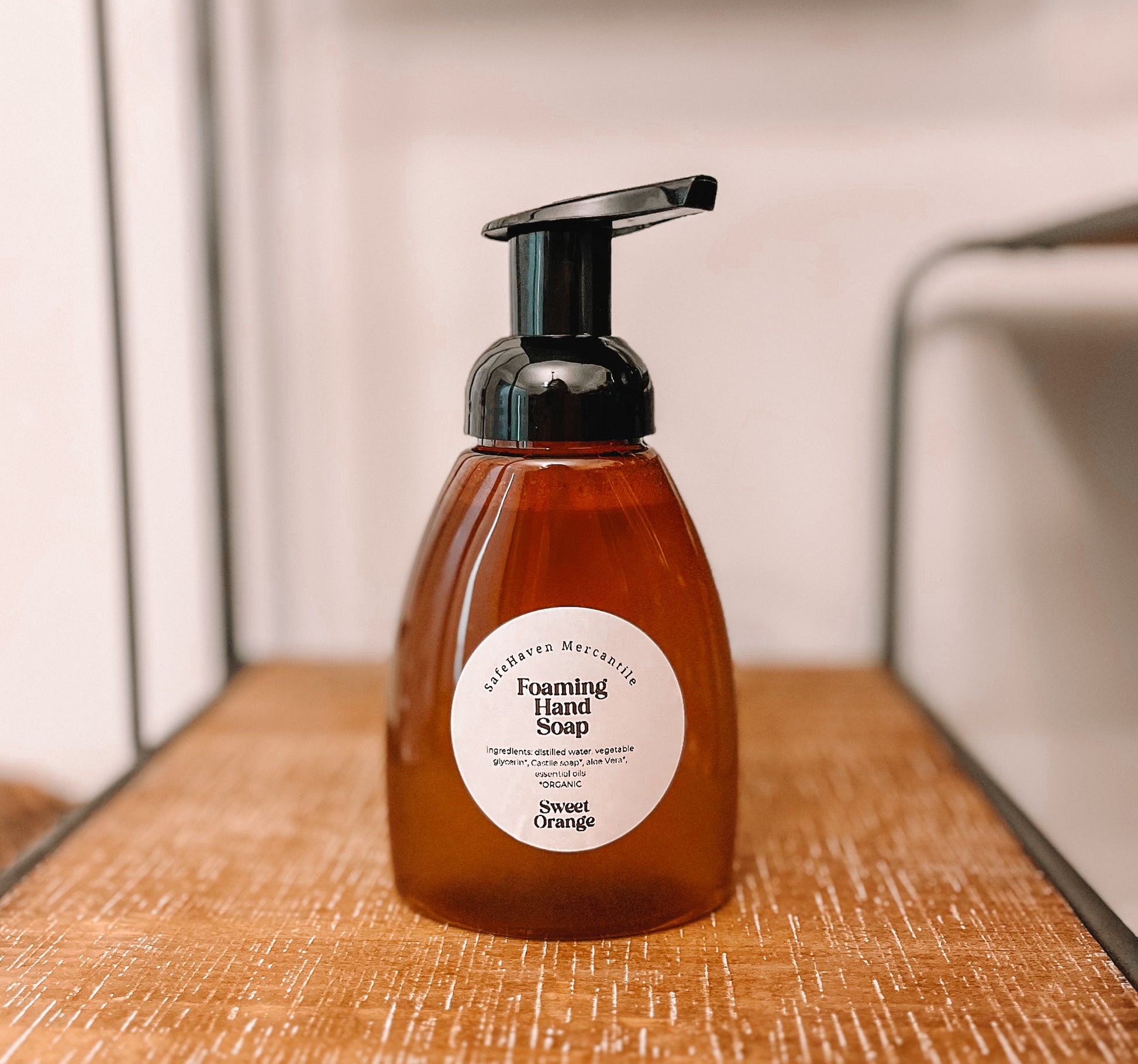 Introducing our non toxic foaming hand soap, thoughtfully scented with pure essential oils. Pamper your hands with a luxurious lather, leaving them clean, refreshed, and delicately fragranced – all without the worry of harmful chemicals.