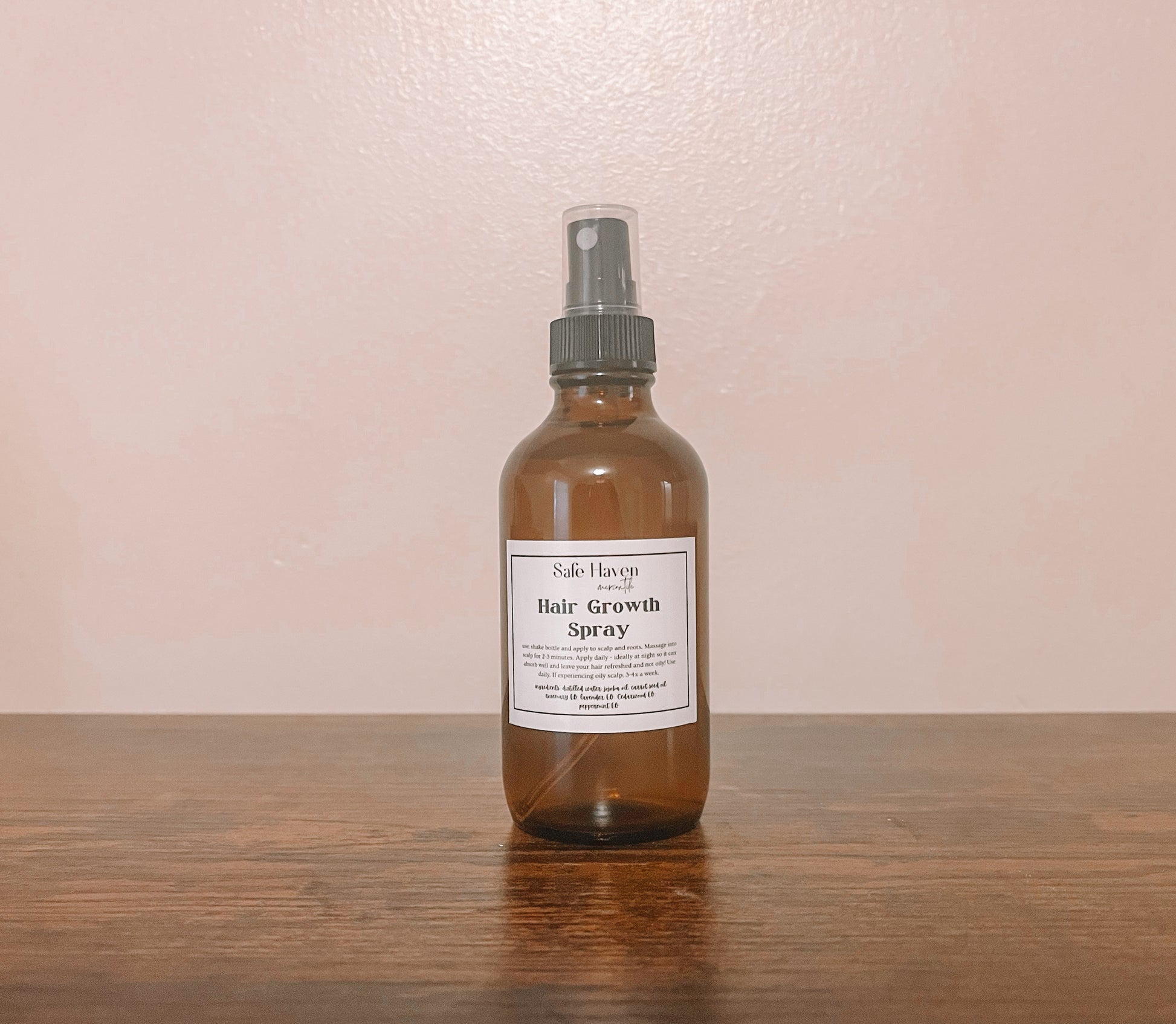 Ingredients: distilled water, jojoba oil, carrot seed oil, rosemary EO, peppermint EO, lavender EO, Cedarwood EO