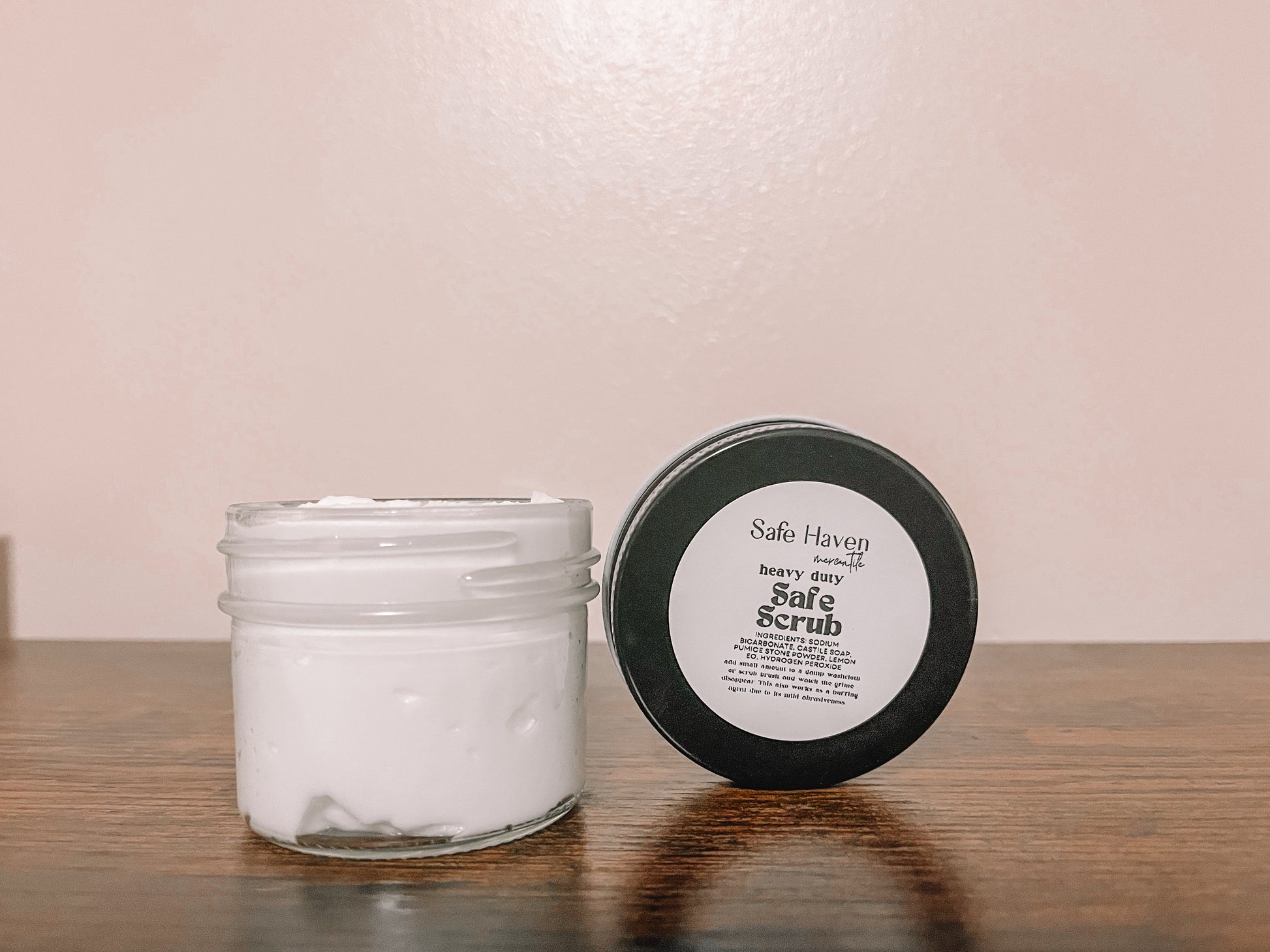 Elevate your cleaning experience with our heavy duty SafeScrub that features pumice stone powder! Comes ready to use in a glass jar.