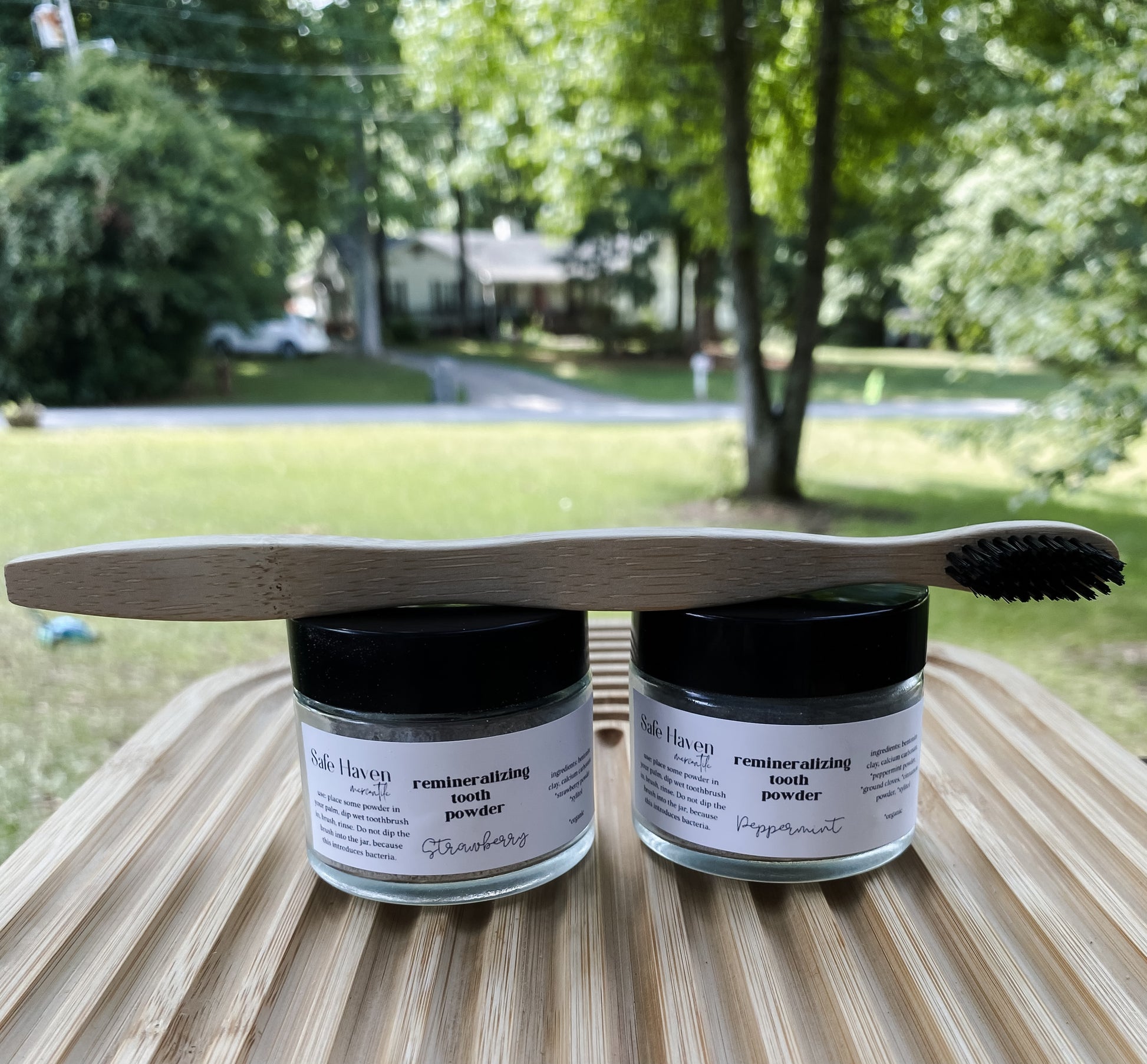 Remineralizing tooth powder is a natural dental hygiene product designed to strengthen and restore tooth enamel. It contains ingredients like calcium carbonate, bentonite clay, cinnamon and clove powder, and peppermint powder. These components help to replenish minerals, reduce sensitivity, and maintain oral health.